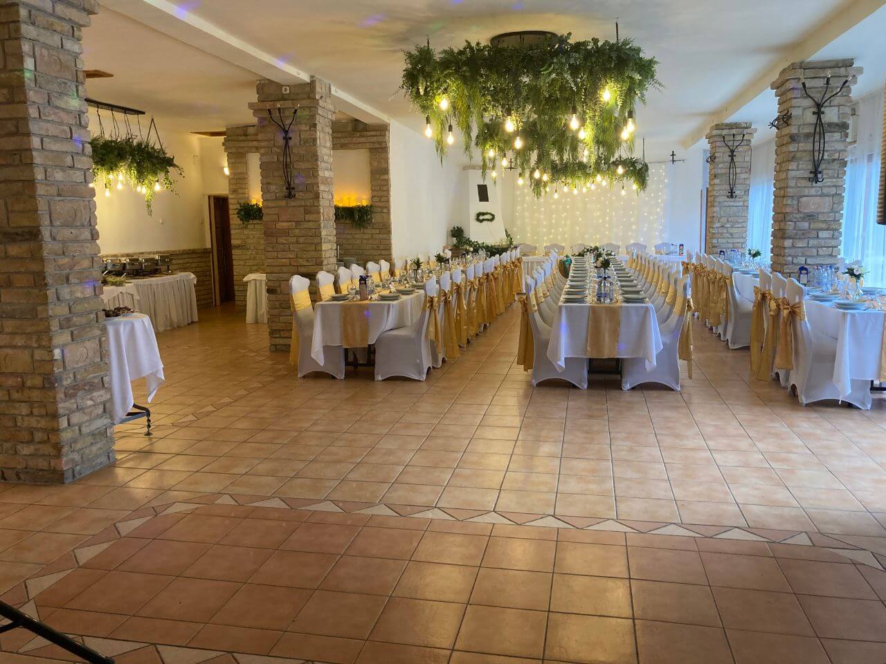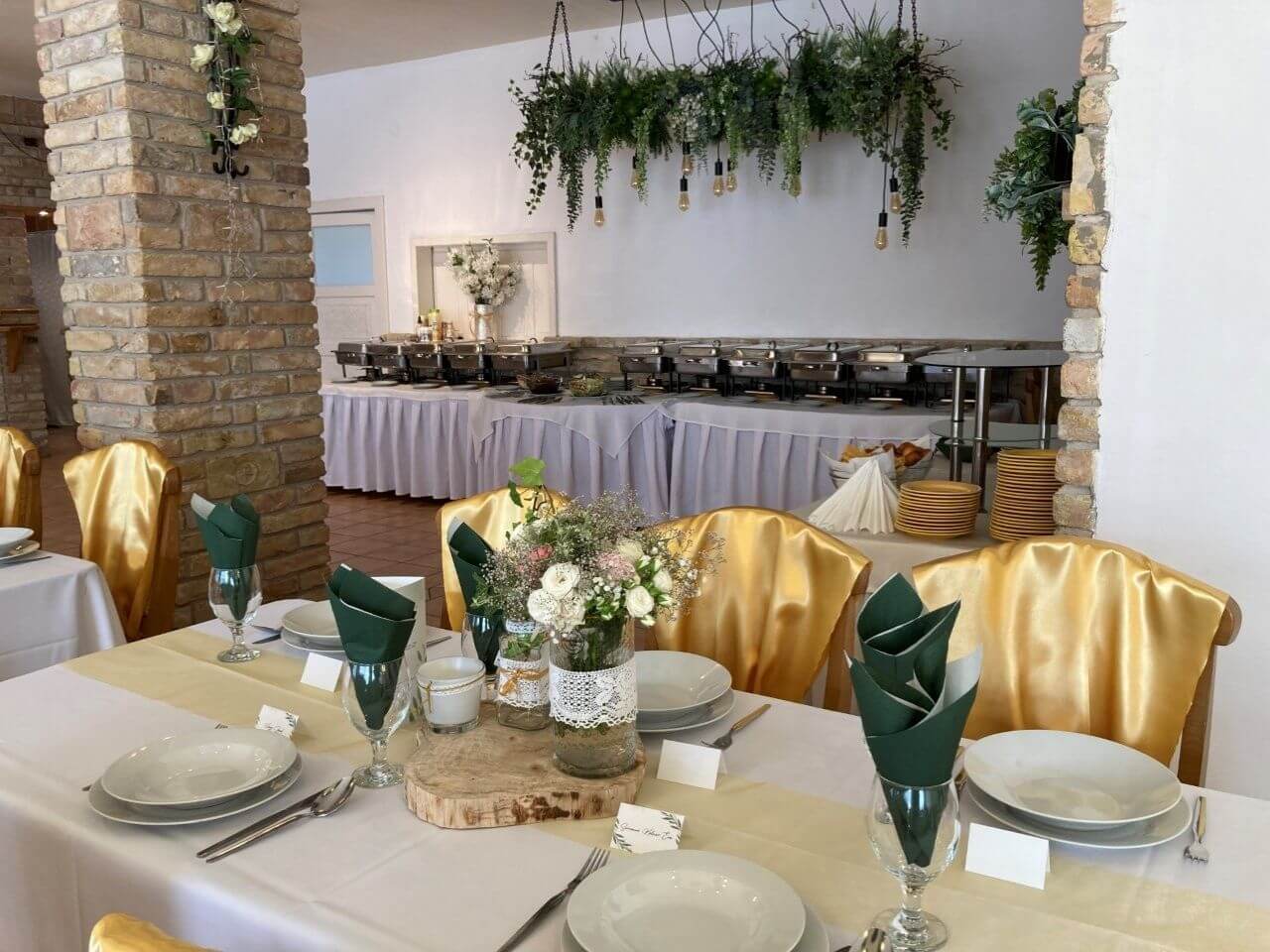 A helyszín stílusa greenery, vintage és rusztikus, így minimális dekorációval is elegáns hangulat érhető el.