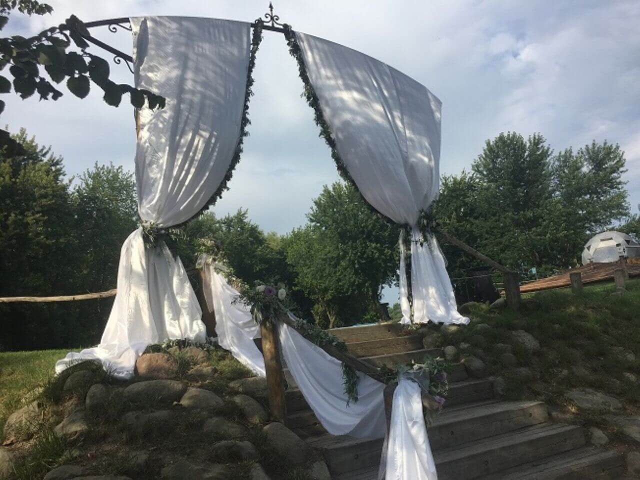 A szertartáshoz kihelyezzük a boldogságkaput, a díszasztalt és a székeket, így nektek csak kimondani az igent kell.