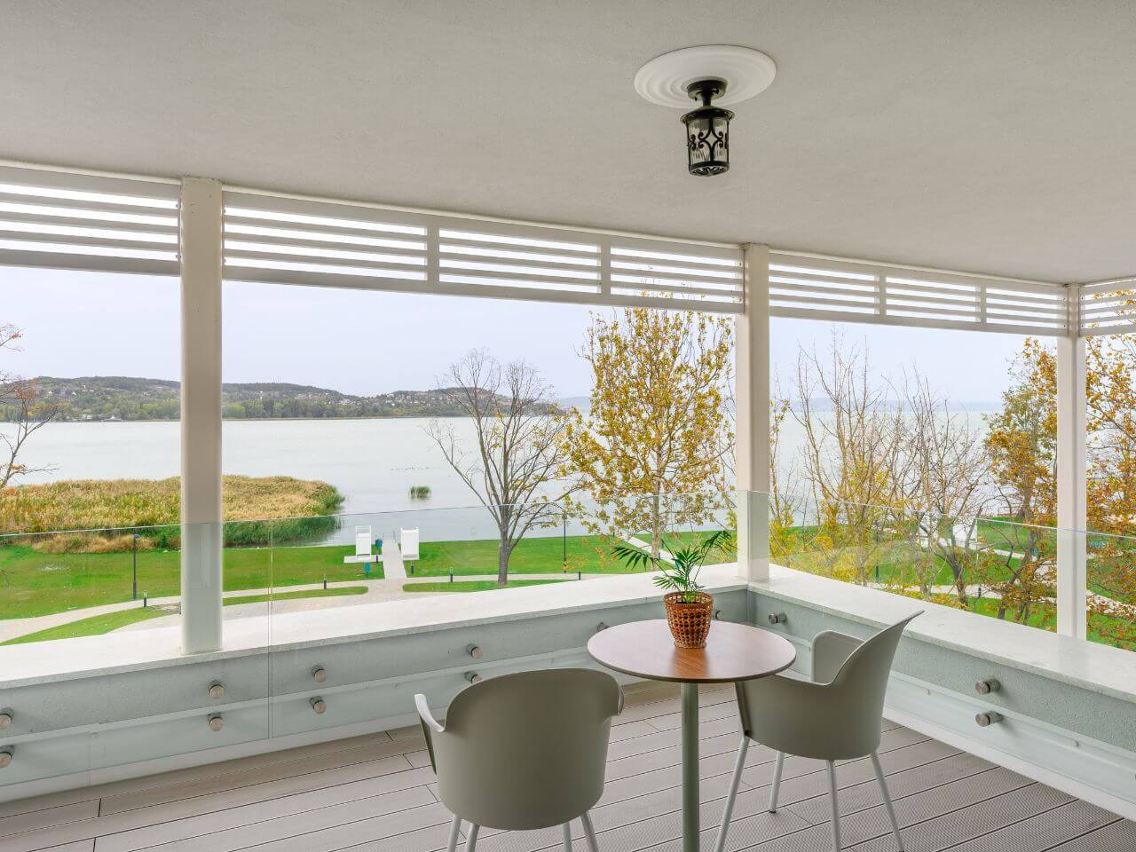 Deluxe lakosztályok: A 56 m²-es Deluxe Suite a legmagasabb kategóriát képviseli, saját terasszal és balatoni panorámával. Itt a párok a naplementét a vízparti nyugalommal párosítva élvezhetik, a modern elegancia és kifinomultság minden részletben jelen van.