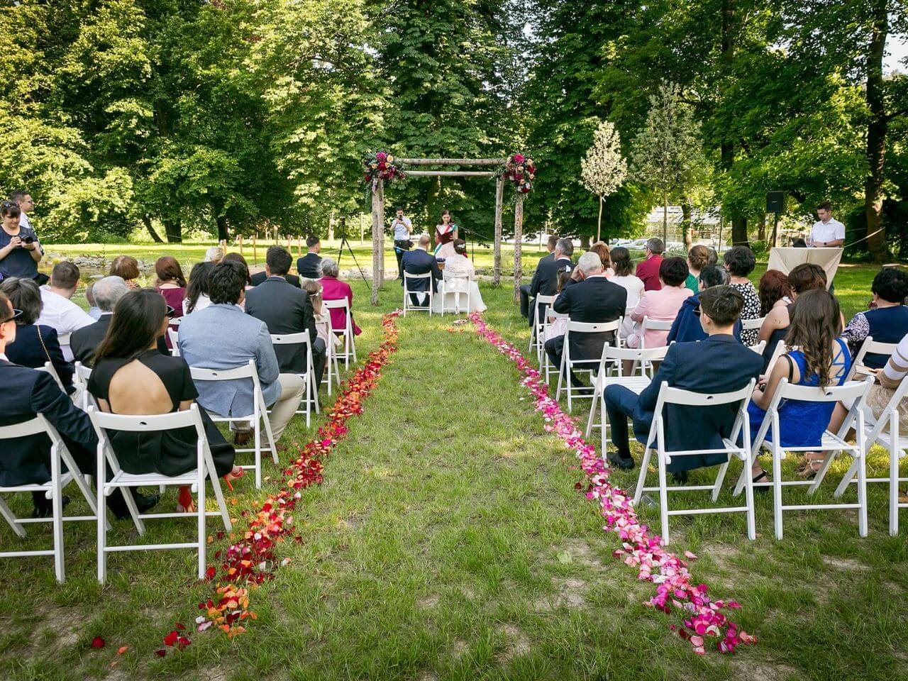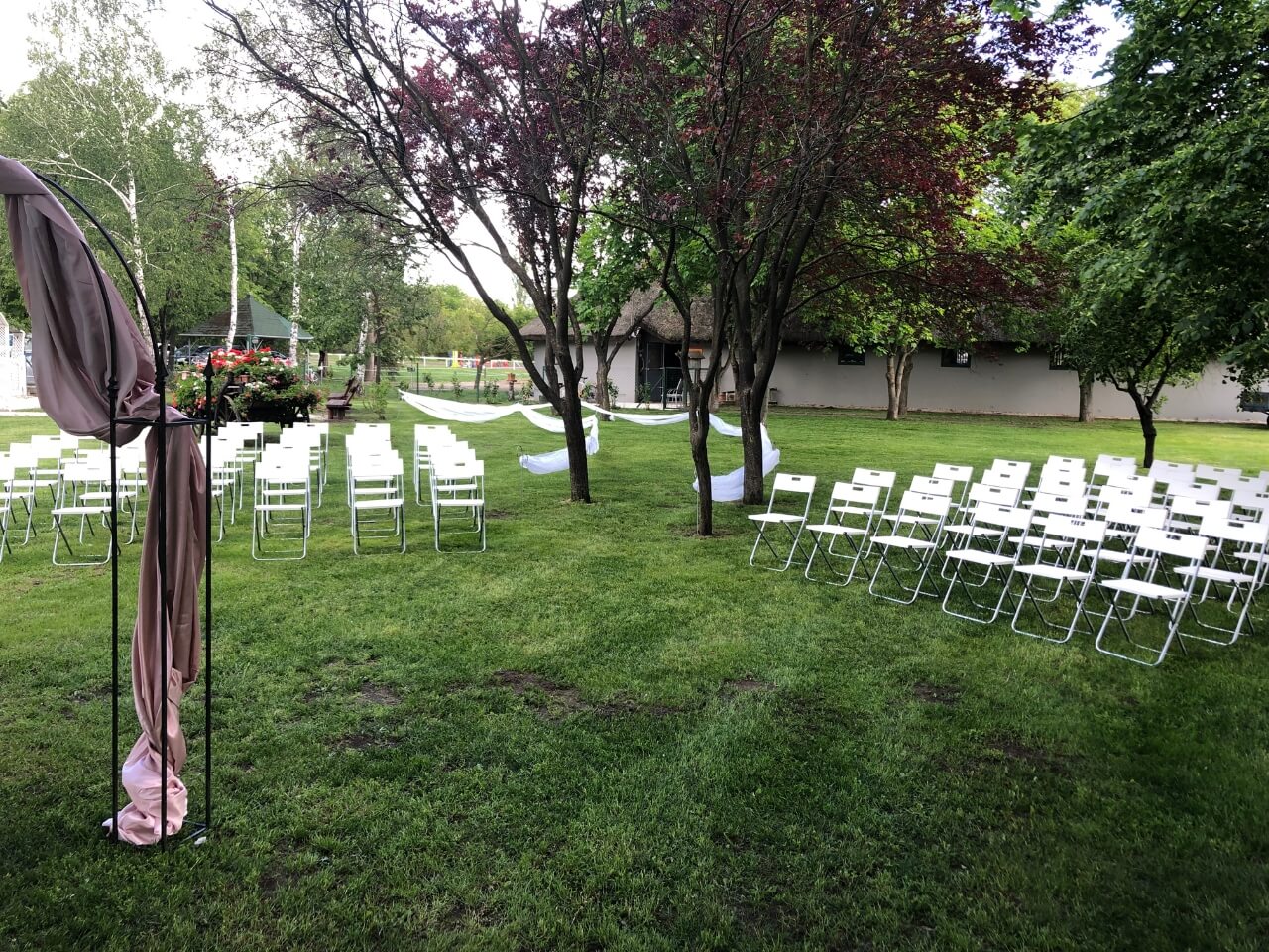 Lehetőség van a polgári szertartás helyszínen történő lebonyolítására a szálloda csodálatos parkjában, a következőket biztosítjuk: hangosítás, mikrofon, zenelejátszó (CD/bluetooth/USB), anyakönyvvezetői asztal, hófehér hímzett abrosszal díszítve. Fehér székek, rózsakapu ízléses díszítéssel (fehér leszúrók, fehér organza, a széksorok között rózsaszirom felszórással).